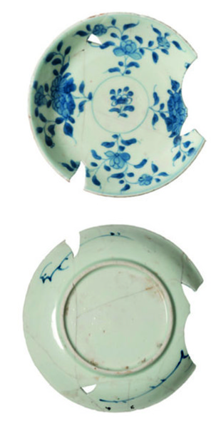 | 5c decoratie | floraal motief onderglazuur blauw |