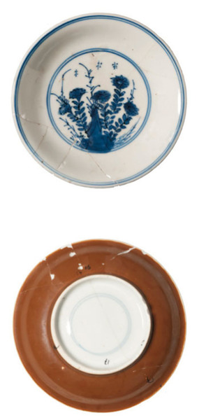 | 5c | floraal motief, onderzijde ijzerrode glazuur onderglazuur blauw, bruin |