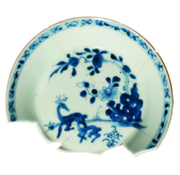 | 5c decoratie | herten in landschap onderglazuur blauw |
