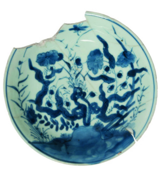 | 5c decoratie | floraal motief onderglazuur blauw |