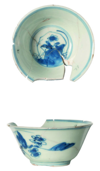 | 5c decoratie | floraal motief onderglazuur blauw |