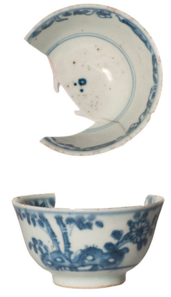 | 5c decoratie | landschap met rots onderglazuur blauw |