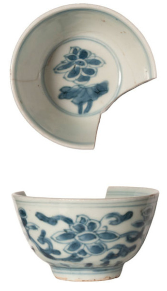| 5c decoratie | floraal motief onderglazuur blauw |