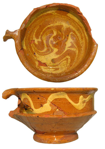 | 5c decoratie | ringeloor: slingerlijn op buitenzijde, sliblaag in doorlooptechniek aan binnenzijde |