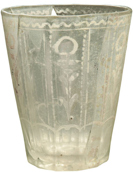 | 4b | dikwandige beker met verticale ribben, onderaan meerzijdig of met geslepen facetten, verdikte bodem met standvlak met (eventueel weggeslepen) pontilmerk |