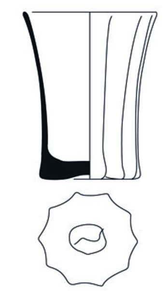 | 4b | dikwandige conische of getailleerde beker met rechte of uitstaande lip, verticale ribben, opgestoken bodem of standvlak (eventueel verlopend naar achtzijdig) met pontilmerk |