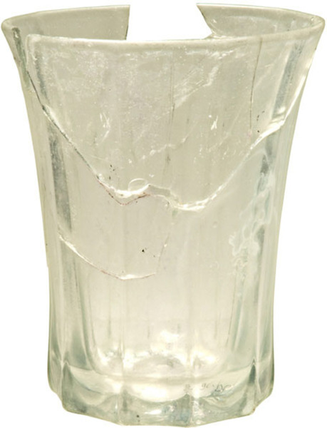 | 4b vorm | dikwandige conische of getailleerde beker met rechte of uitstaande lip, verticale ribben, opgestoken bodem of standvlak (eventueel verlopend naar achtzijdig) met pontilmerk |