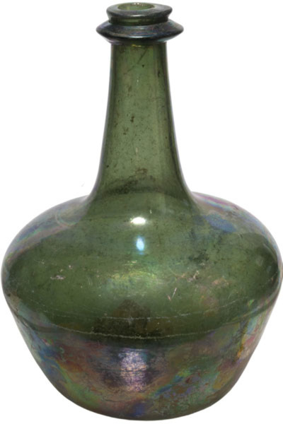 | 4b | bolvormige wijnfles met de grootste breedte aan de schouder en naar beneden sterk conisch, met V-vormige of afgeronde draad om de lip, opgestoken bodem met pontilmerk |