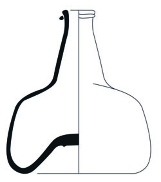 | 4b | bolvormige wijnfles met licht conische buik, grootste breedte aan de basis, opgestoken bodem met pontilmerk |