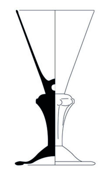 | 4b vorm | trechtervormig kelkglas met dikwandige bodem veelzijdige stam van vijf of meer zijden met luchtbel, ook met diamanten op de schouders, voet met pontilmerk |