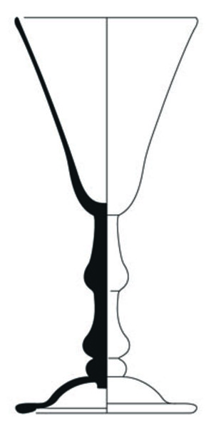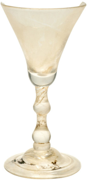 4b vorm klokvormig kelkglas met massieve dubbele balusterstam met daaronder een kleine nodus, koepelvormige voet met pontilmerk