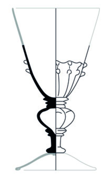 | 4b | conisch kelkglas met afgeronde bodem met versiering van verticale rijen geprononceerde knobbels in Meza-forma, vierlobbige holle nodus- of balusterstam met één of meer schijfjes, schijfvormige voet met pontilmerk |