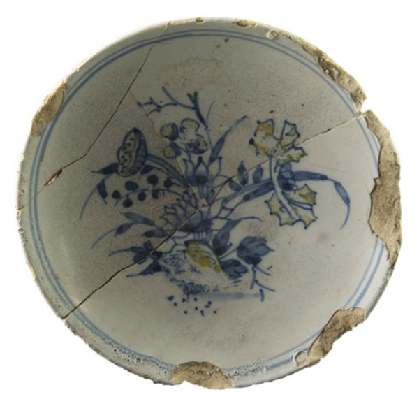 | 5c | onderglazuur blauw, bovenglazuur geel; inw: blauwe bloemen met geel hart polychroom |