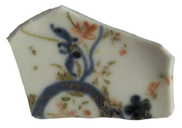 | 5c decoratie | bovenglazuur groen, rood, goud; in- en uitwendig bloem/bladmotief polychroom |