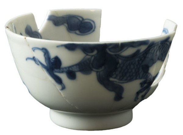 | 5c decoratie | in- en uitwendig: drakenmotief in blauw onderglazuur blauw |