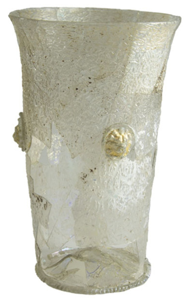 | 4b | cilindrische of licht conische beker met structuur oppervlak (ijsglas) met uitstaande rand, opgestoken bodem met pontilmerk, voetring |