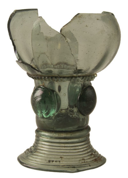 | 4b | roemer met korte halfronde cuppa, geribde draad op de overgang naar de schacht en één of meer verspringende rijen noppen, ook met patroonvorm, opgestoken bodem met pontilmerk, gewonden draadvoet |