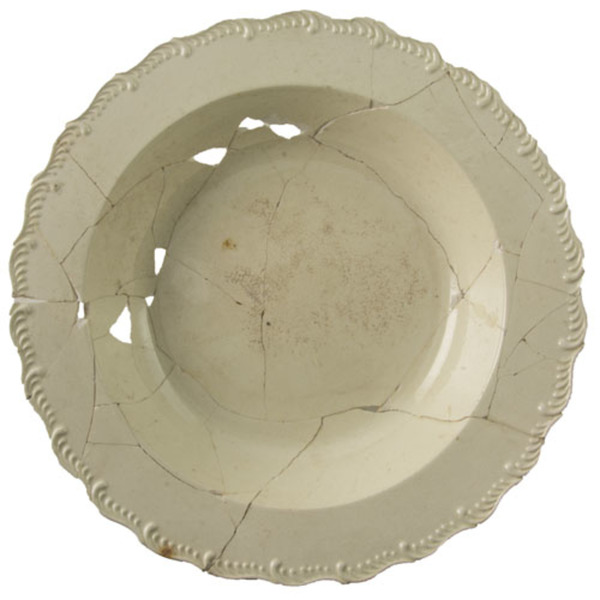 | 4b vorm | diep bord met reliëf versiering aan rand, standring |