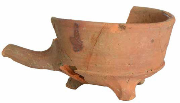 | 4b | diepe ronde vuurtest met scherpe knik bodem-wand en rechte rand, poten |
