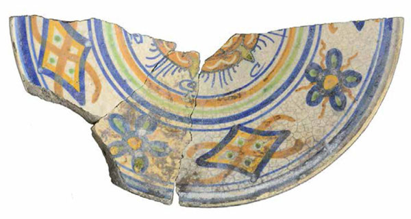 | 5c | veelkleurige beschildering in blauw, geel en groen inwendig: polychroom |