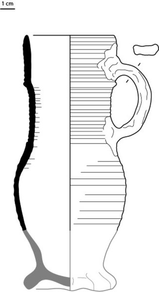 | 4b | bolle kan met ribbel ter hoogte ooraanzet en ribbel op hals, op standring |