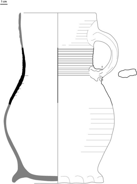 | 4b | bolle kan met hoge rechte of licht uitlopende hals en rechte rand, op standring |