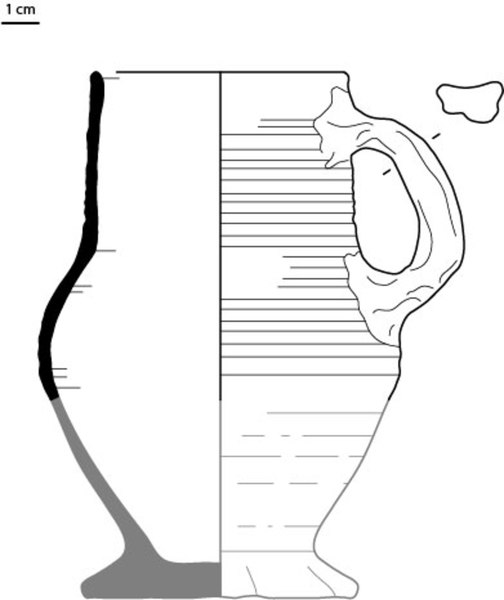 | 4b | biconische kan met buikknik met ribbel en hoge hals met rechte rand, standring |
