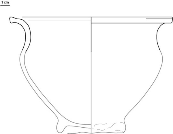| 4b | wijd uitlopende kom met insnoering hals en uitgebogen, van buiten aangedrukte rand, gewelfde standring |