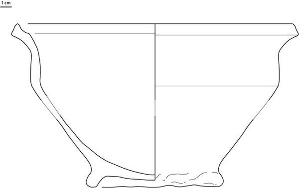 | 4b | wijd uitlopende kom met insnoering hals en uitgebogen, van buiten aangedrukte rand, gewelfde standring |