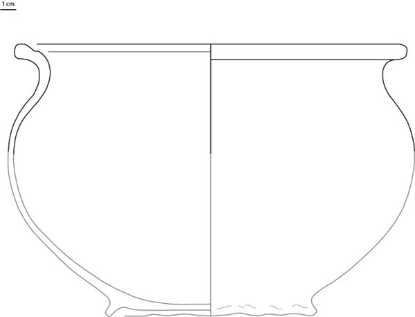 | 4b | handgevormde bolle pot met driehoekig verdikte rand, standring |