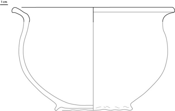 | 4b | handgevormde bolle pot met driehoekig verdikte rand, standring |