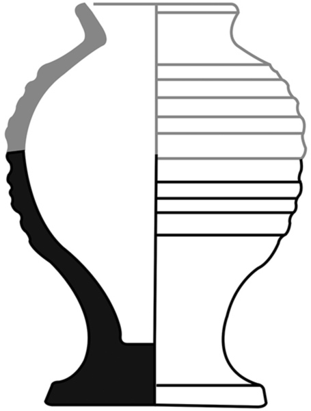 | 4b vorm | bolle beker met hoge schouder en uitstaande rand, standvoet |