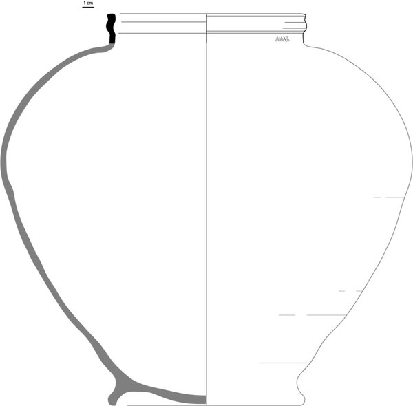 | 4b vorm | bolle voorraadpot met hoge schouder zonder hals, kraagrand, standring |