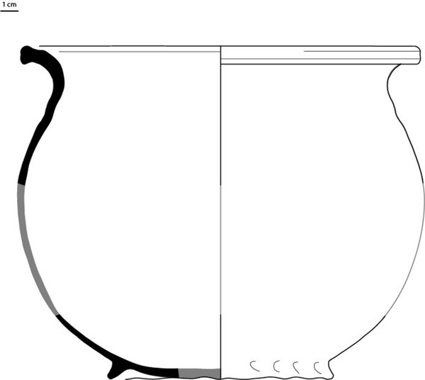 | 4b | bolle pot met naar buiten geknikte en aan de buitenzijde aangedrukte rand, standring |