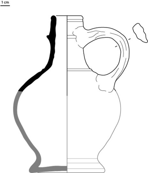 | 4b | bolle kan met hoge hals en kraagrand, ribbel op schouder, standvoet |
