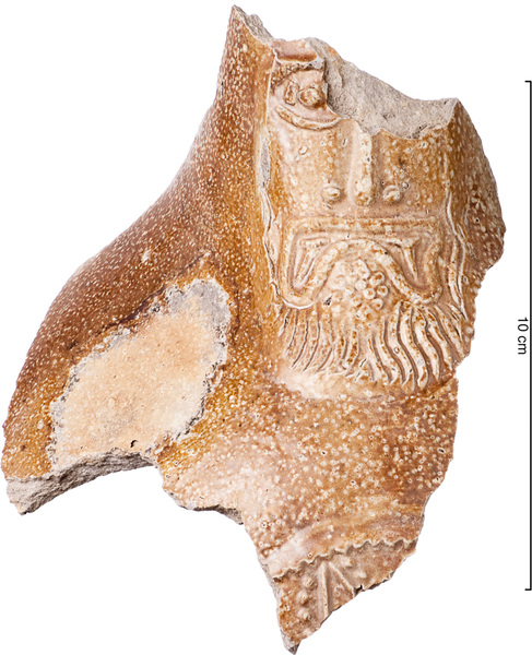 | 5c decoratie | 'getijgerd' appliques: baardman en (bloem-)rozet staart bij ooraanzet |