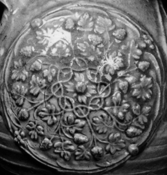 | 5c | uitwendig: drie appliques: twee medaillons, met margriet en rankversiering; een medaillon met kruisiging |