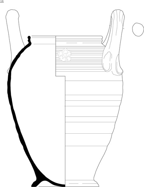 | 4b | hoge pot met hoge schouder en wijde hals, zware kraagrand met dekselgeul, standring |