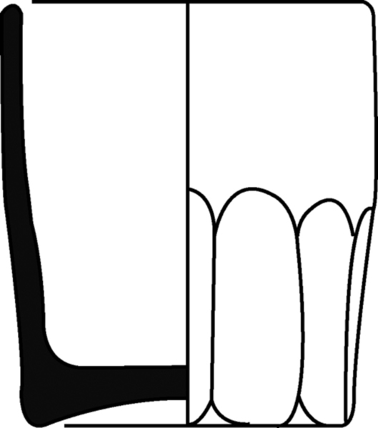 | 4b vorm | dikwandige cilindrische of licht conische beker met verticale afgeronde vlakken, standvlak of standring |