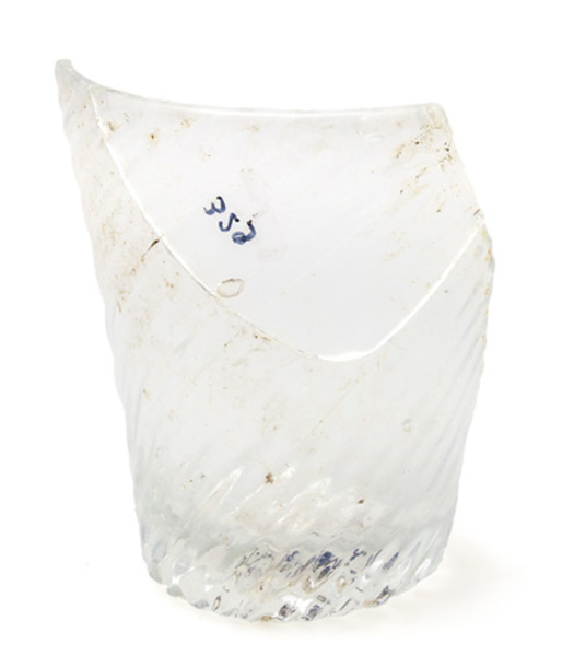 | 4b vorm | dikwandige conische beker met getordeerd reliëfpatroon, verdikt standvlak met pontilmerk |