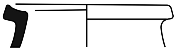 4b vorm kleine pot met horizontaal geknikte en aan de zijkant aangedrukte rand, lensbodem
