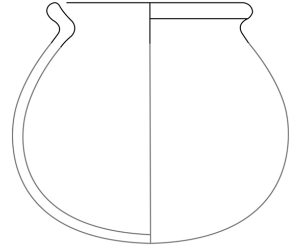| 4b vorm | kogelpot met korte uitstaande hals en afgeronde rand met dekselgeul |