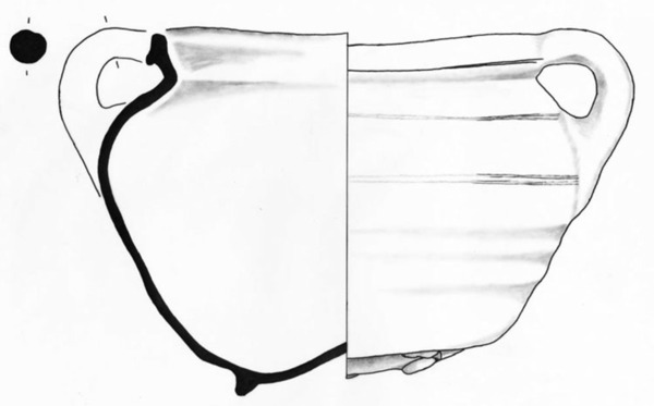 | 5d | glazuur aan binnenzijde reductiegroen, fijne groeflijnen op de schouder, misbrand |