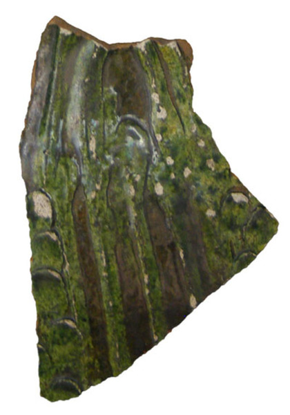 | 5c decoratie | opgelegde sliblijnen en schubben met kopergroen |