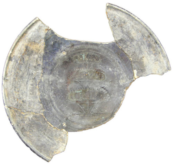 | 5c | waarschijnlijk polychroom. Op de spiegel fruitschaal met drie niveaus. Daarrond enkele filets, daarrond bloemblaadjes achtig en geometrisch motief |