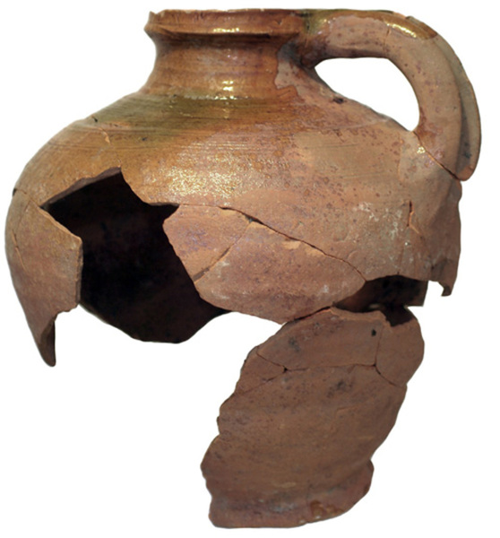 | 4b | bolle kan met hoge schouder en cilindrische hals, kraagrand met dekselgeul, standring |