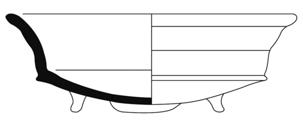 | 4b vorm | steilwandige kom met scherpe knik bodem-wand en (verdikte) ronde rand, lobvoeten |