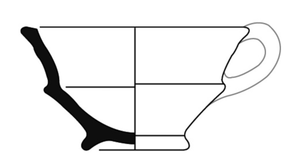 | 4b | ronde vuurtest met scherpe buikknik en rand met aan de bovenzijde een geultje, standring |