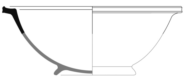 | 4b | bolle kom met haaks naar buiten geknikte rand, aan buitenzijde aangedrukt, standring |