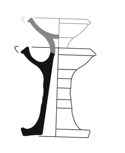 | 4b vorm | hoge olielamp met twee schalen en holle stam, eveneens holle standvoet |